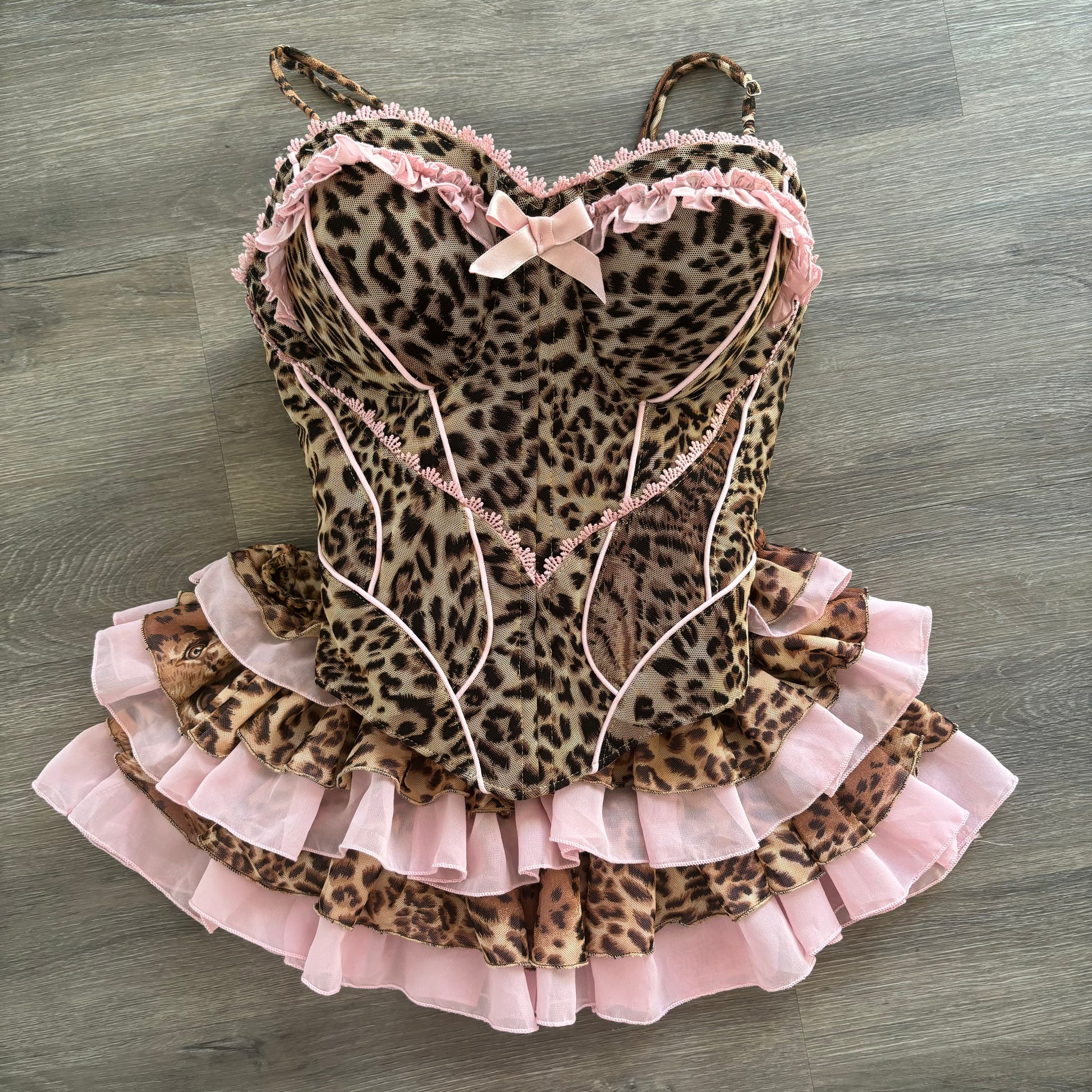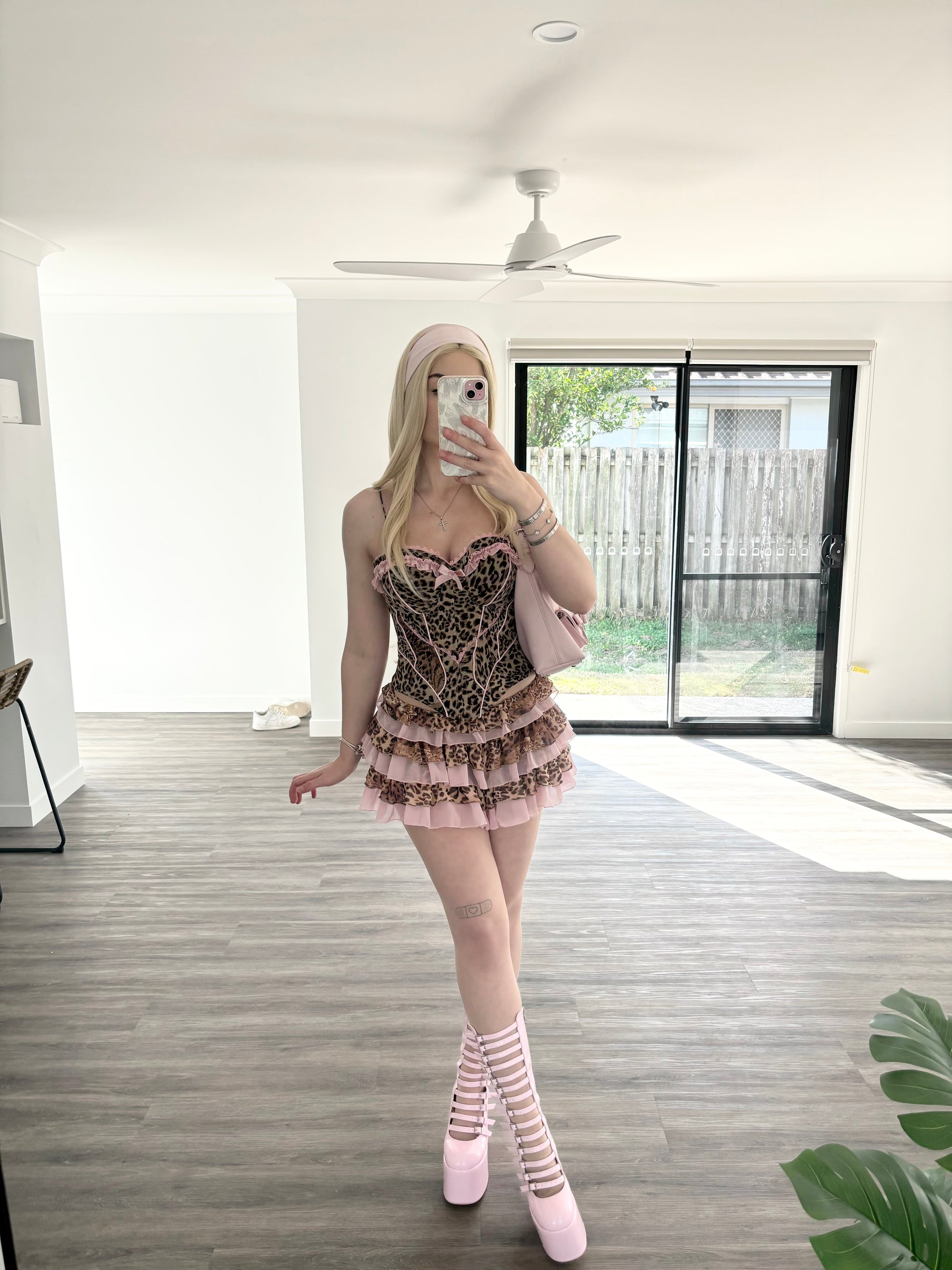 Luz castillo y2k leopard print pink bow corset and skirt set